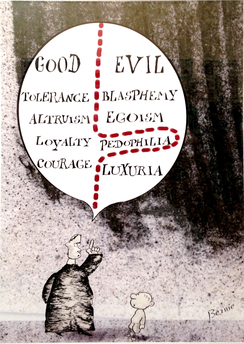 Portanto, a premiação de um cartum sobre padres e pedofilia no tema “cartum erótico” constituiu um marco importante do Salão de Melaito deste ano, pois enfrenta dois tabus (religião e pedofilia), ampliando o sentido do erótico para suas consequências sociais e culturais.